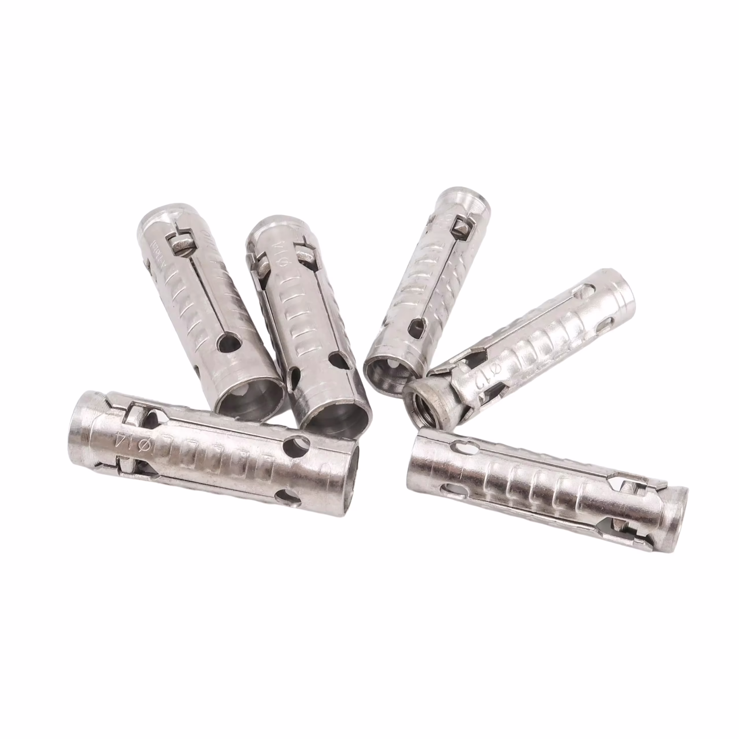 It typically has a bolt or threaded stud, an expansion sleeve, and a tapered cone. When you tighten the nut/bolt, the cone is pulled into the sleeve, which expands against the hole wall and locks the anchor in place.
